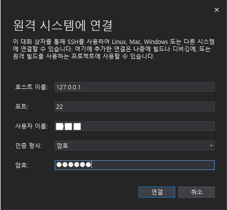 사용자 이름에는 WSL의 사용자 이름이고, 암호도 WSL의 암호입니다.