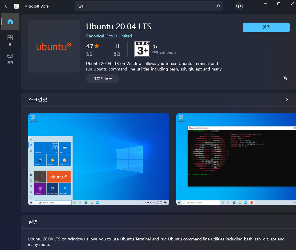 WSL을 다운받은 후 리눅스 기본 설정을 해주시면 됩니다.